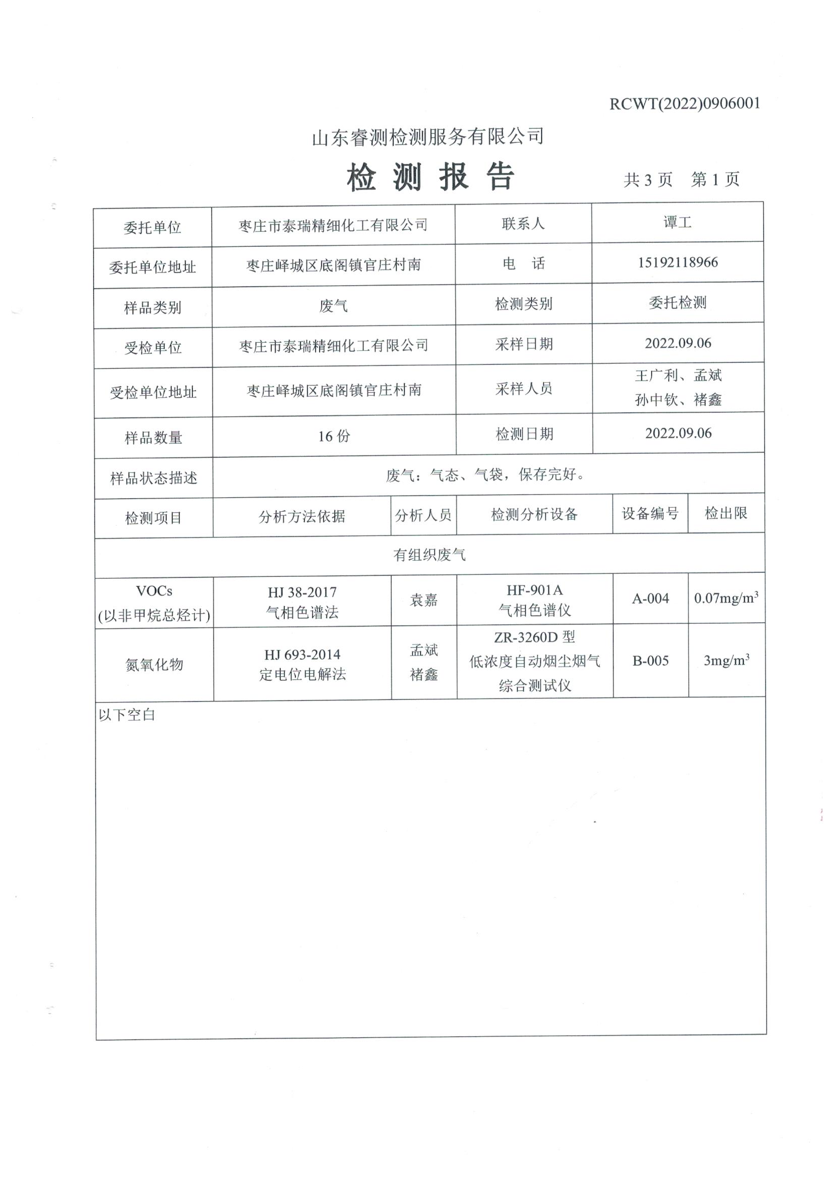 2022年9月份環(huán)保檢測(cè)報(bào)告
